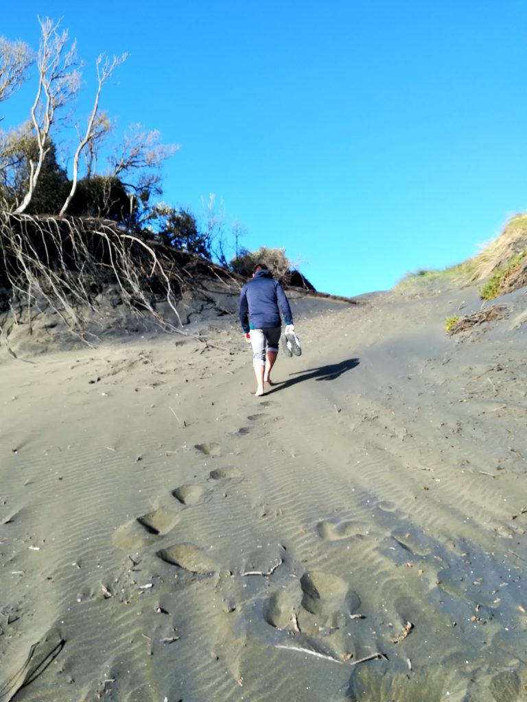 Um das ganze natürlich in bester Umgebung genießen zu können, sind wir aus Auckland raus an die Westküste zum Muriwai Beach gefahren. Hier gab’s schon direkt einen Strandspaziergang und Sonnenuntergangsfotografie. ? Der Strand ist hier übrigens schwarz aber wir haben noch nicht rausgefunden warum.